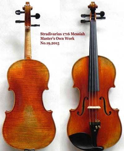 Ich habe eine Violine von ihm, die wie ein Nachbau der Stradivari Messiah von 1716 aussieht und sie klingt auch sehr gut.