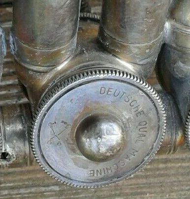 Ihr Fotos zeigt das sogenannte Reichs-Ursprungs-Zeichen, welches in der NS-Zeit genutzt wurde - möglicherweise nicht nur in Markneukirchen. Entsprechende Brand- bzw. Schlagstempel liegen noch heute in einigen vogtländischen Holz- und Metallblasinstrumentenbau-Werkstätten vor. Gerade mit der Kennzeichnung von Ventilmaschinen konnte man zeigen, dass die Instrumente komplett inländische Produkte waren, was seinerzeit besonders präferiert wurde.