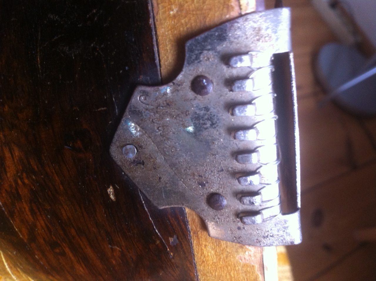 Nun ist die Frage, gibt es Kenntnis davon, dass andere Hersteller diesen Saitenhalter "verbaut" haben? Ggf. war der Saitenhalter damals ein Massenprodukt, vielleicht zugeliefert an einige Mandolinen-Hersteller in Deutschland oder anderswo.